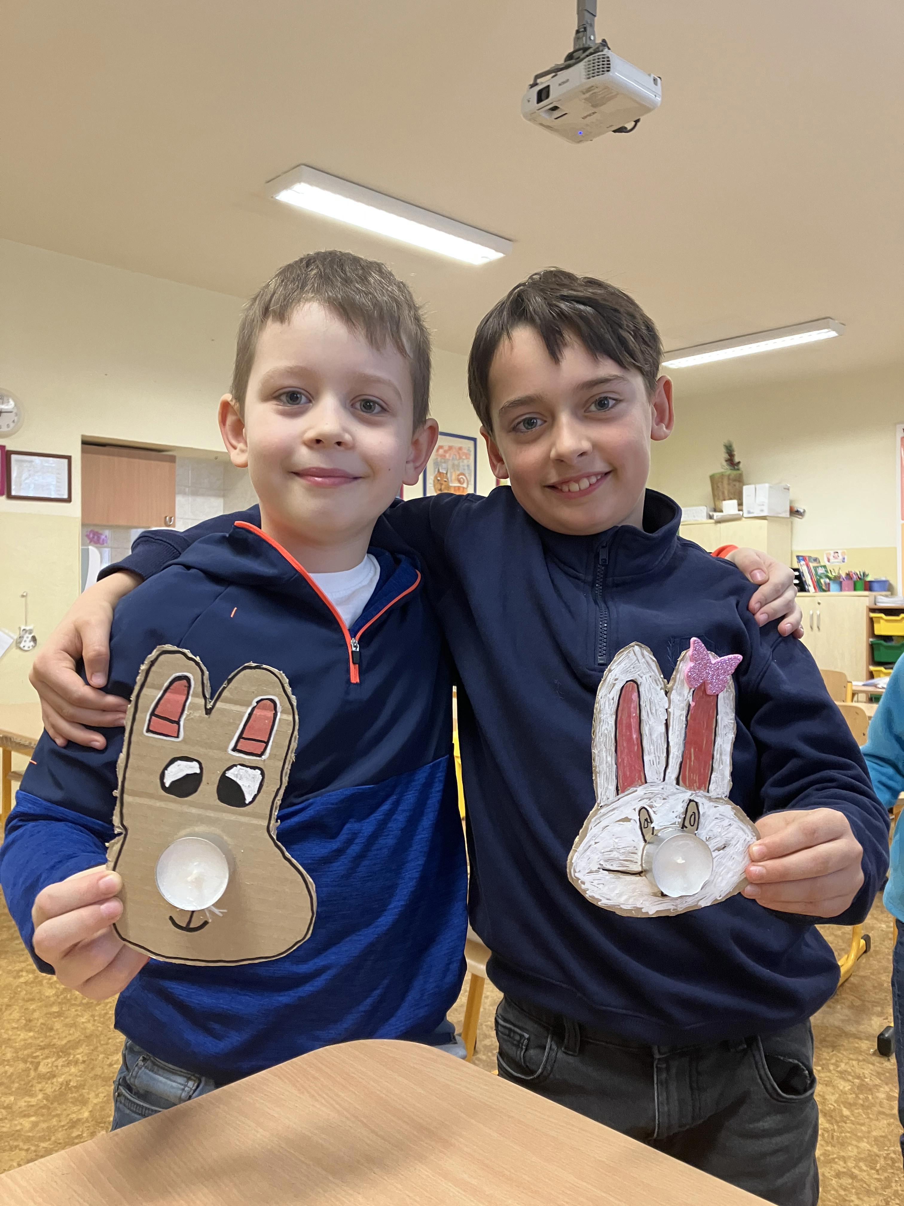Nakoľko sa blíži Veľká noc s deťmi z III. oddelenia sme sa pustili do prípravy veľkonočných dekorácií. Jedným zo symbolov Veľkej noci je zajac, ktorého sme si nakreslili na kartón a vystrihli, následne sme zajacovi na miesto nosa pripevnili čajovú sviečku. Pri vyfarbovaní zajaca sme využili našu fantáziu, z čoho vznikli krásne veľkonočné zajačiky.