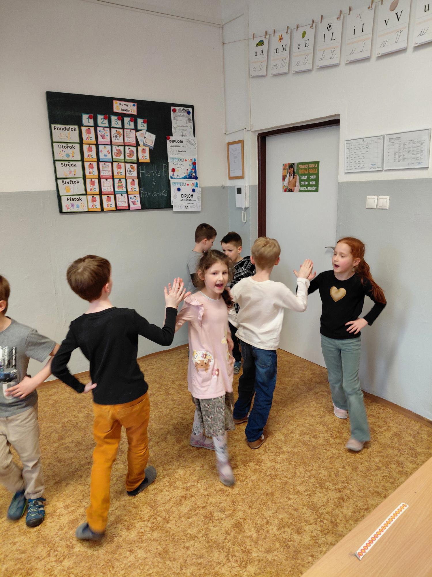 Vyvrcholením celého týždňa bol piatok, keď sme pripravili kultúrne vystúpenie. Naše pozvanie prijali nielen rodičia, ale aj regionálna televízia TV Ružinov. Deti s radosťou predviedli, čo sa počas týždňa naučili, a odmenou im bol veľký potlesk a úsmevy na tvárach divákov. Atmosféra bola výnimočná a všetkým sa podujatie veľmi páčilo.