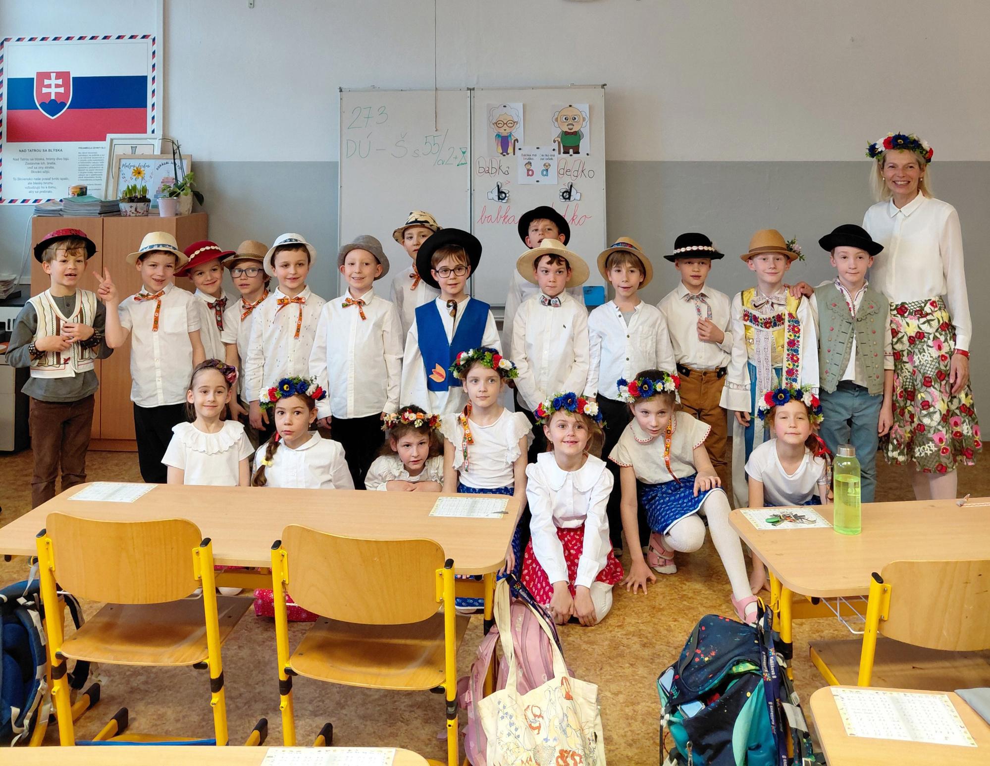 Týždeň sme odštartovali v pondelok rozhovormi o tradičných remeslách. Deti sa dozvedeli, ako kedysi ľudia pracovali vlastnými rukami a aké zručnosti boli potrebné pre každodenný život. V utorok sme sa venovali ľudovým zvykom a tradíciám, rozprávali sme sa o ich význame a postupne sme začali pripravovať program – tvorili sme, nacvičovali a rozvíjali svoju kreativitu.