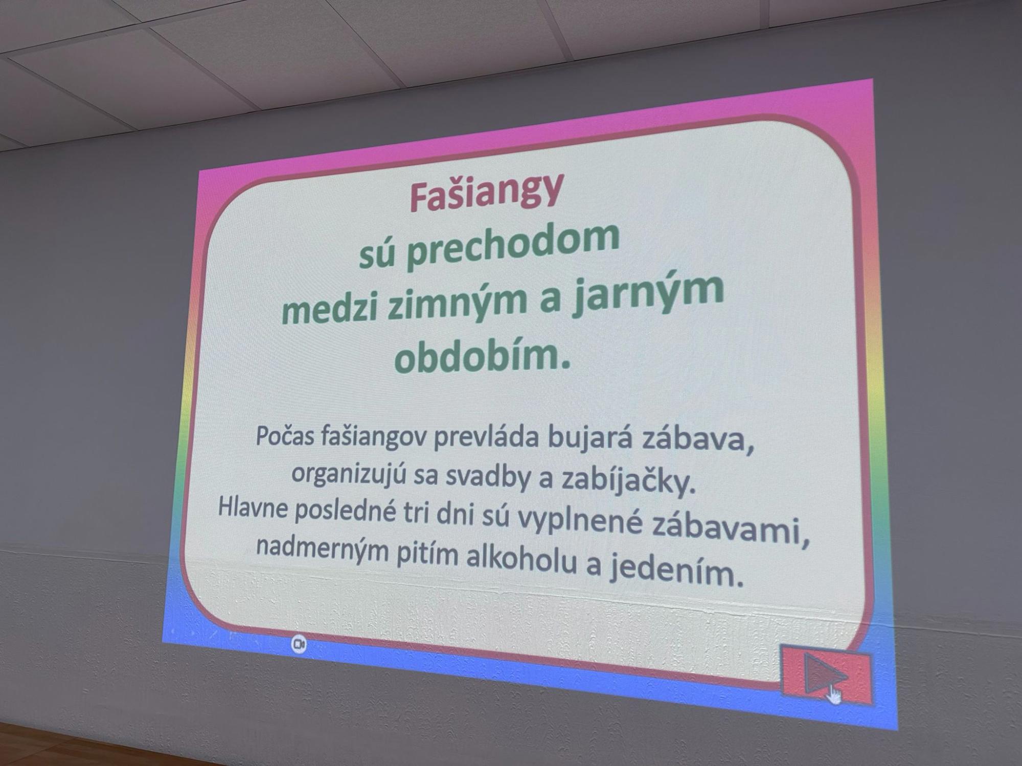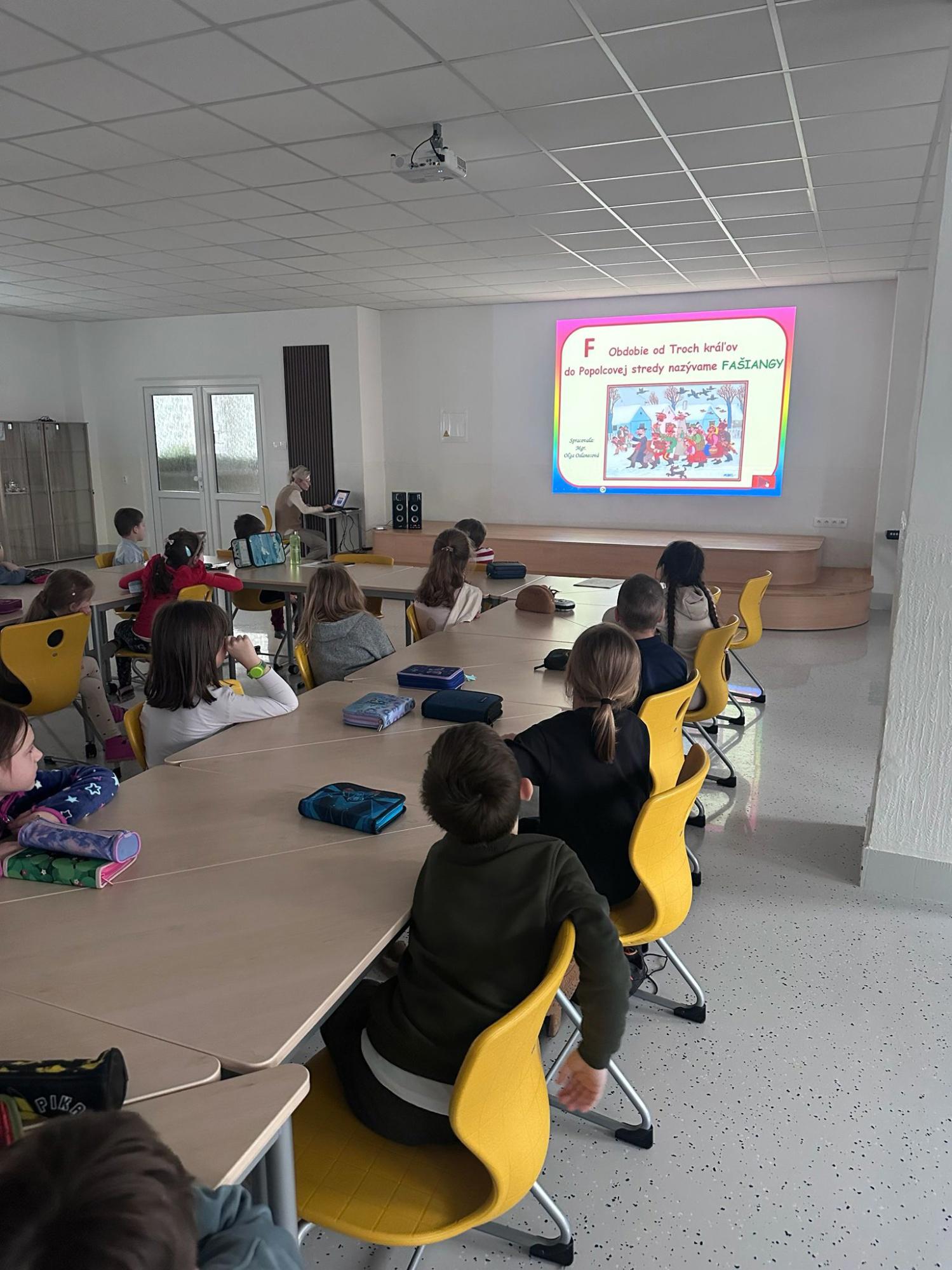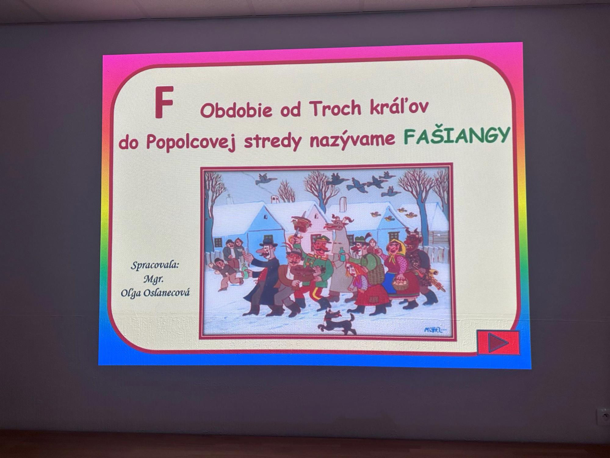 Aktuálne blížiace sa obdobie Fašiangov sme si priblížili prostredníctvom spoločnej piesne, tanca a aj ukážok stále aktuálnych fašiangových sprievodov.